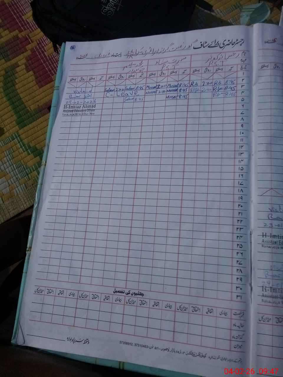 | Name: RU**** KO**** Designation: (School Headmaster's/Headmistress's) PTC/JV Phone/Cell Number: 03**** |