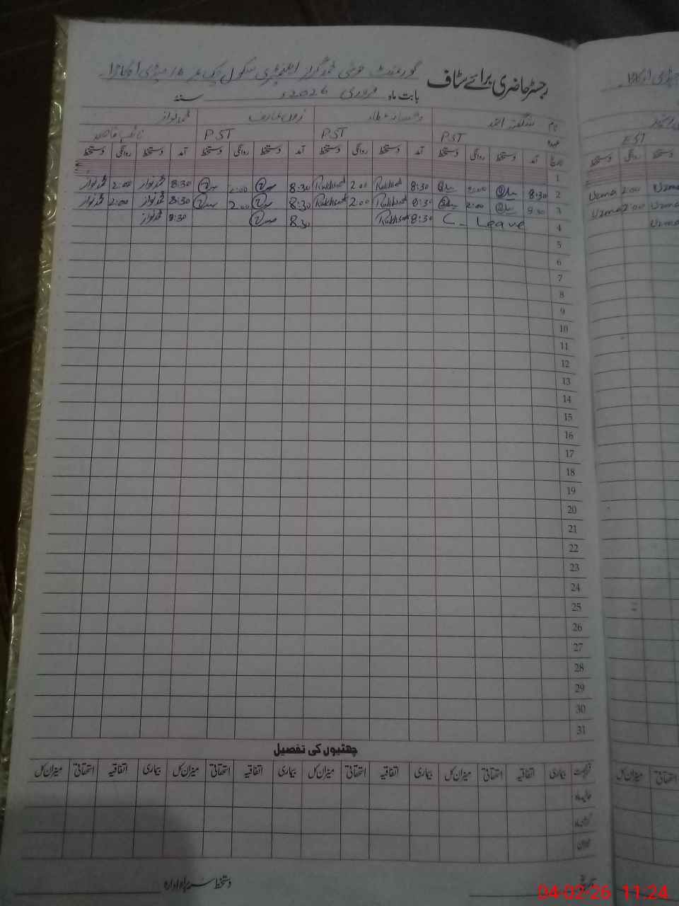 | Leave | Duty | Absent | Maternity | Medical | Ex- Pak |
