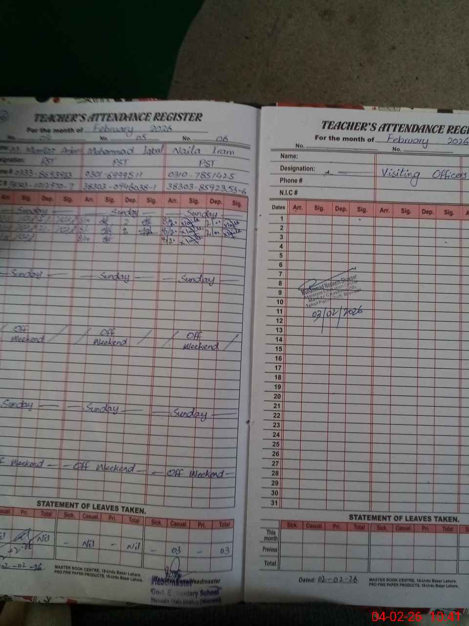| Name: Mu**** Wa**** Designation: (School Headmaster's/Headmistress's) EST ( Arts Phone/Cell Number: 03**** |