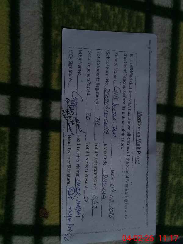 | EMIS Code: 38110019 | Name of School: GHS KOTLA JAM | |||