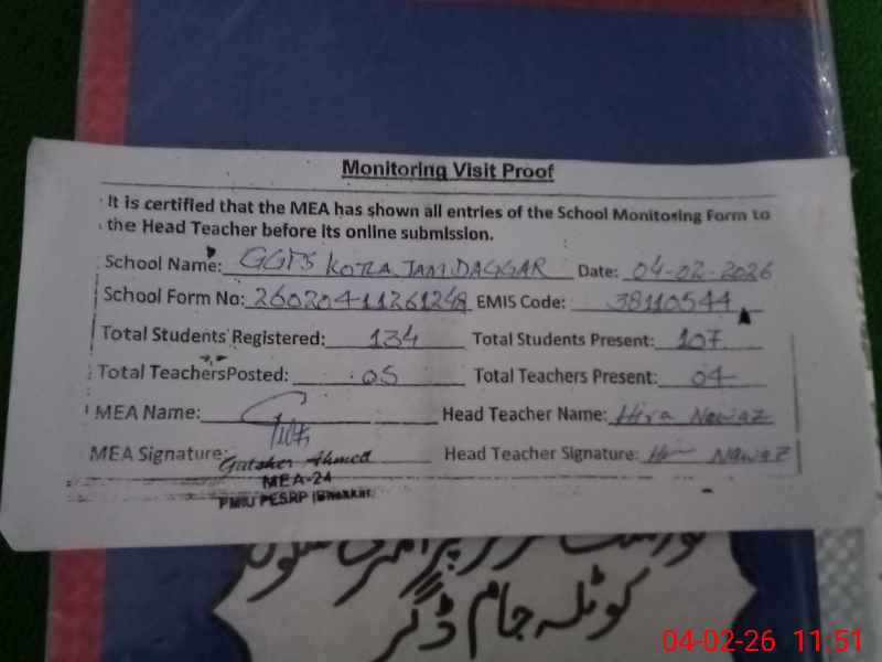| EMIS Code: 38110544 | Name of School: GGPS KOTLA JAAM DAGGAR | |||