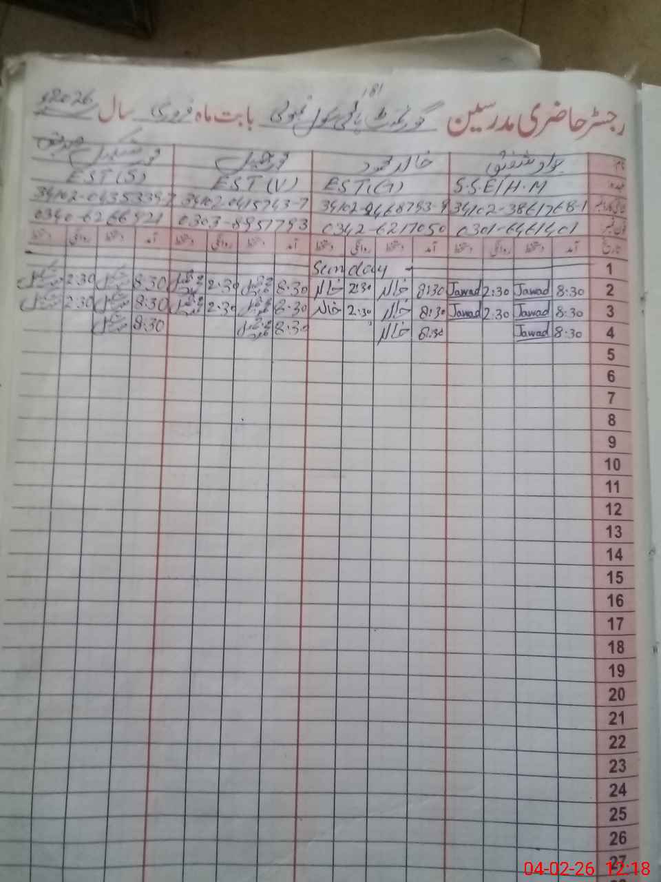 | Name: JA**** SH**** Designation: (School Headmaster's/Headmistress's) SSE INC HEAD Phone/Cell Number: 03**** |