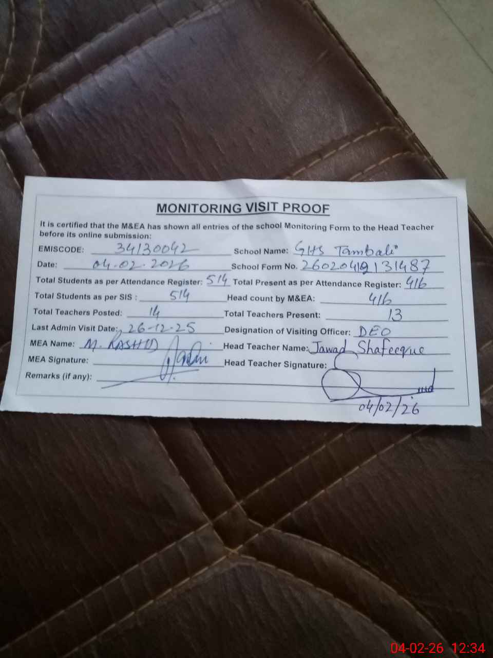 | EMIS Code: 34130042 | Name of School: GHS TAMBOLI | |||