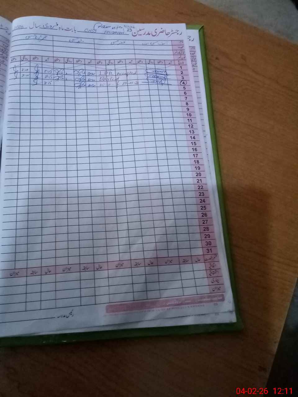 | CNIC | Full Name | Designation | R/C | Absence During Last Calender Month |