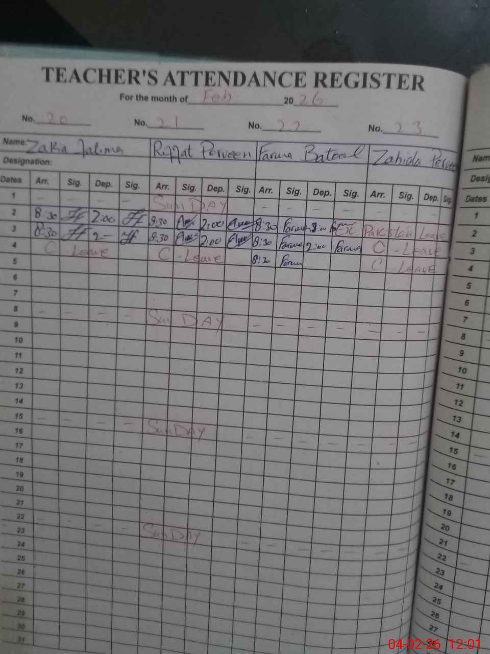 | 33**** | Za**** Fa**** | PST Arts | Regular | 0 | 0 | 0 | 0 | 0 | 0 | 0 | 0 | 0 | Casual |