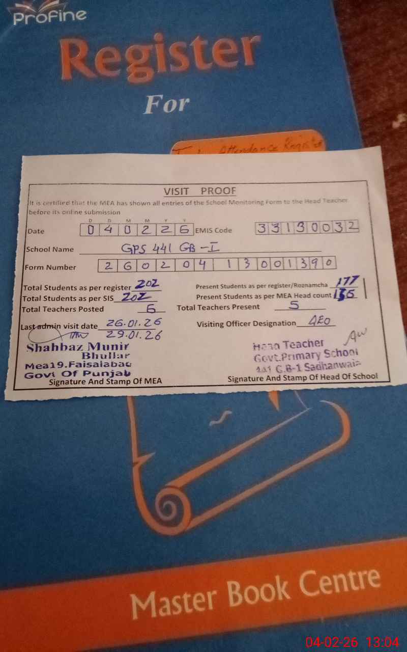 | EMIS Code: 33130032 | Name of School: GPS CHAK 441 GB SADH SAMUNDRI | |||
