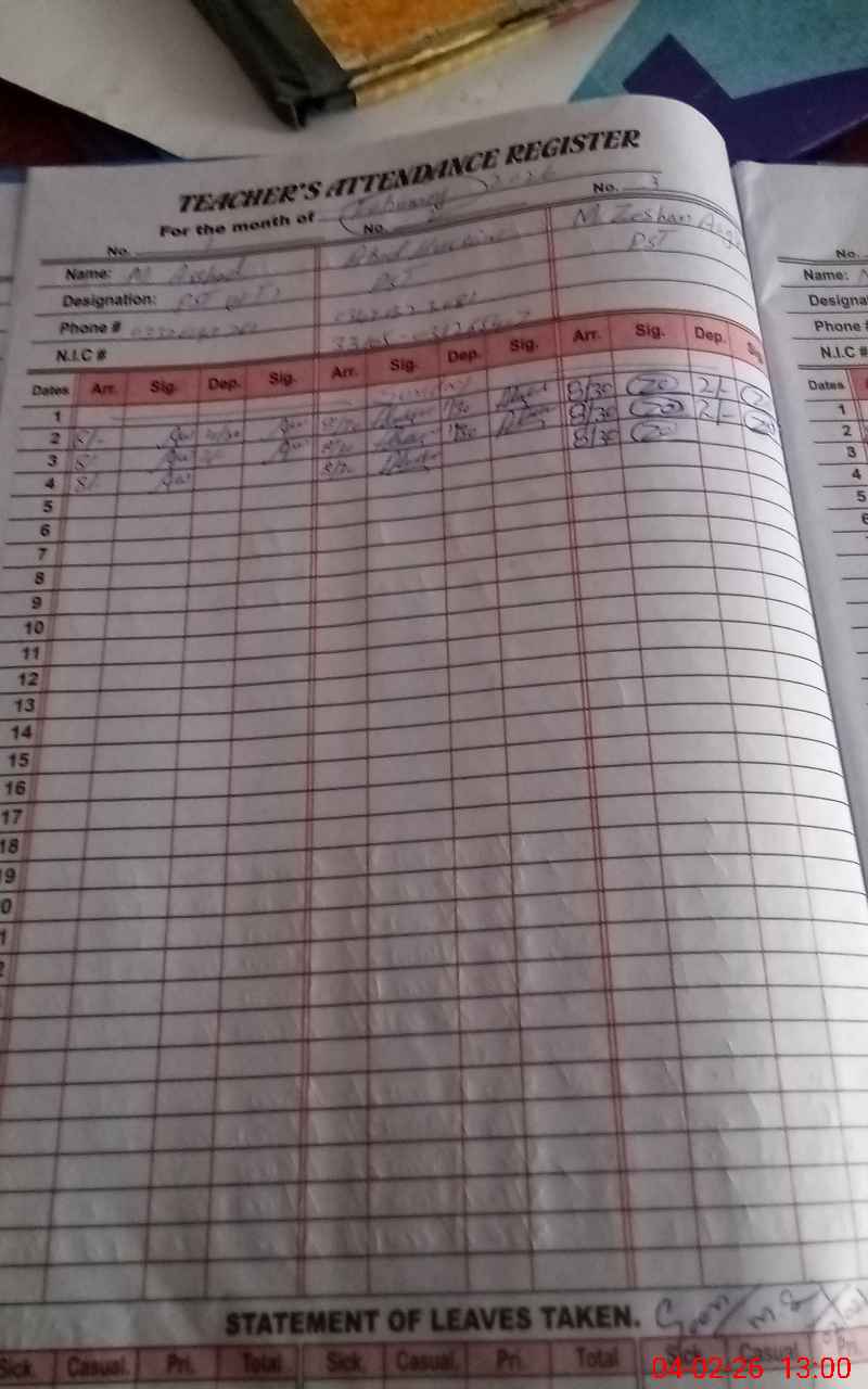 | Name: MU**** AR**** Designation: (School Headmaster's/Headmistress's) PST Phone/Cell Number: 03**** |