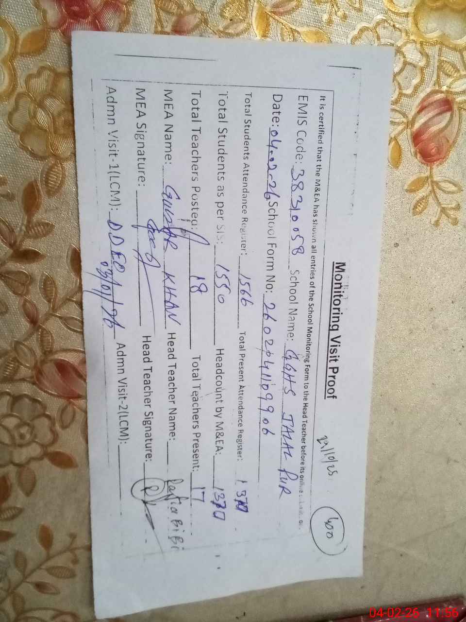 | EMIS Code: 38310058 | Name of School: GGHS JALAL PUR | |||