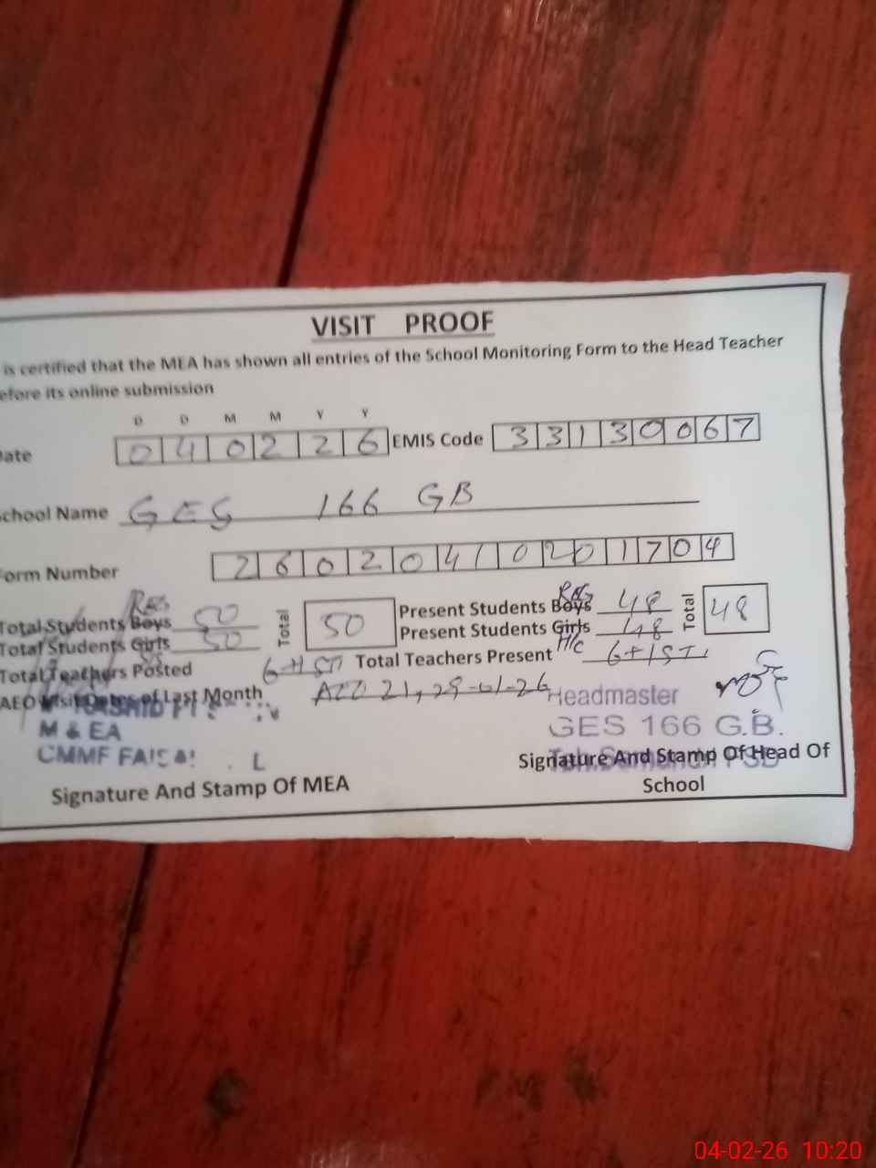 | EMIS Code: 33130067 | Name of School: GES CHAK 166 GB | |||