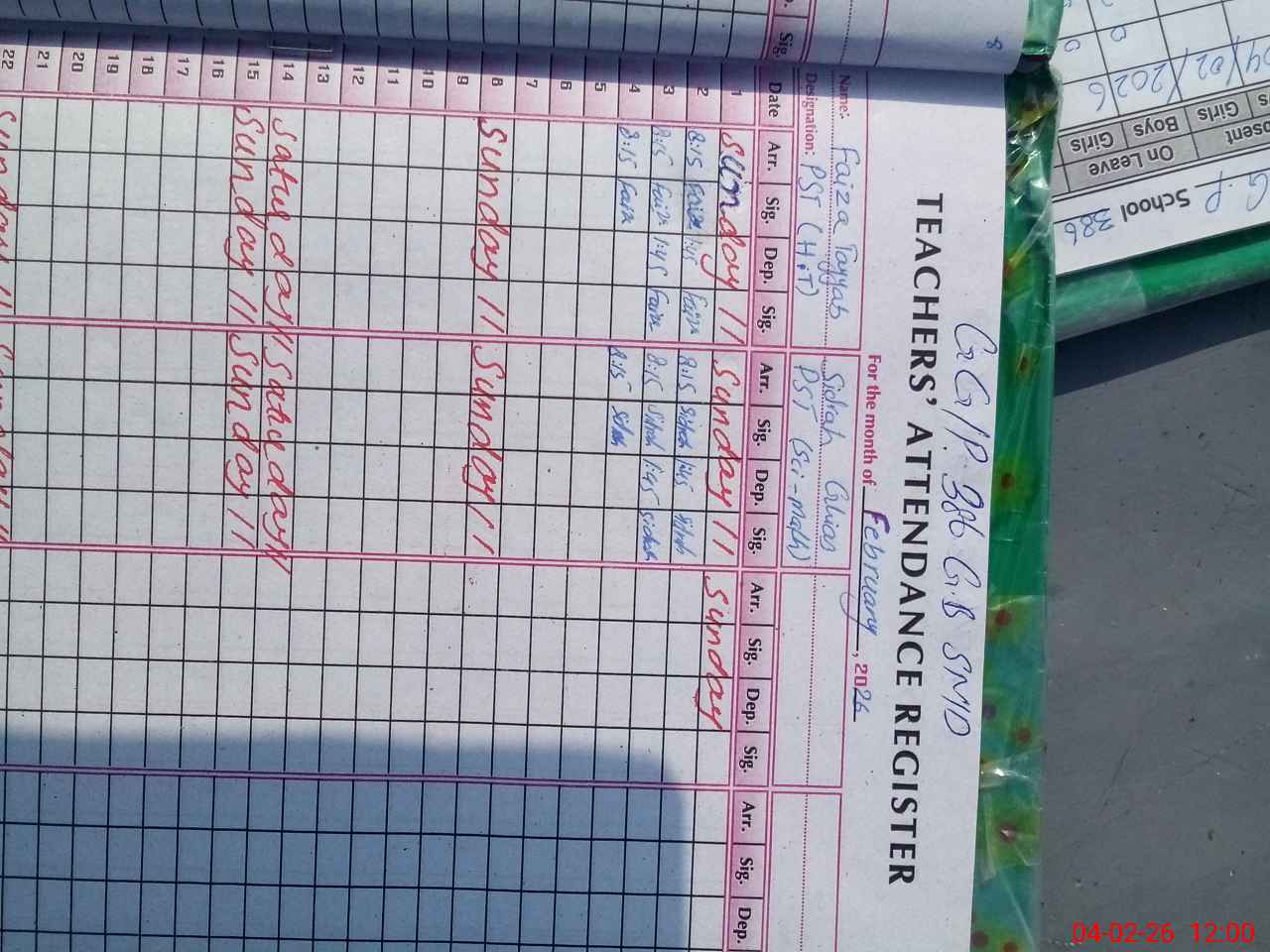 | Name: FA**** TA**** Designation: (School Headmaster's/Headmistress's) PST Phone/Cell Number: 03**** |