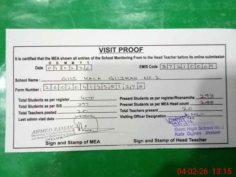 | EMIS Code: 37210009 | Name of School: GHS KALA GUJRAN NO. 2 | |||