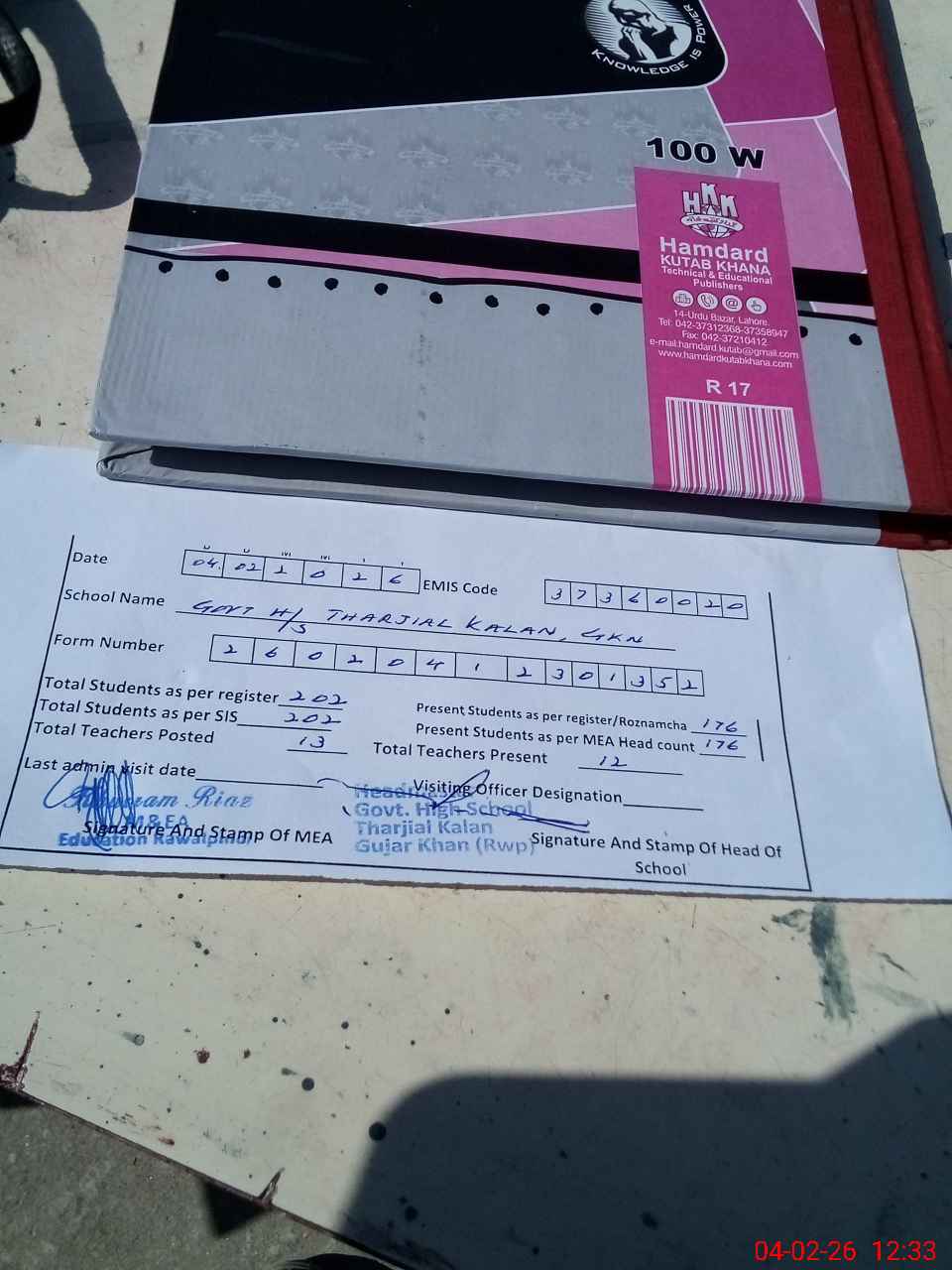 | Attendance Register | Head Teacher | MEA with School | Visit Proof |
