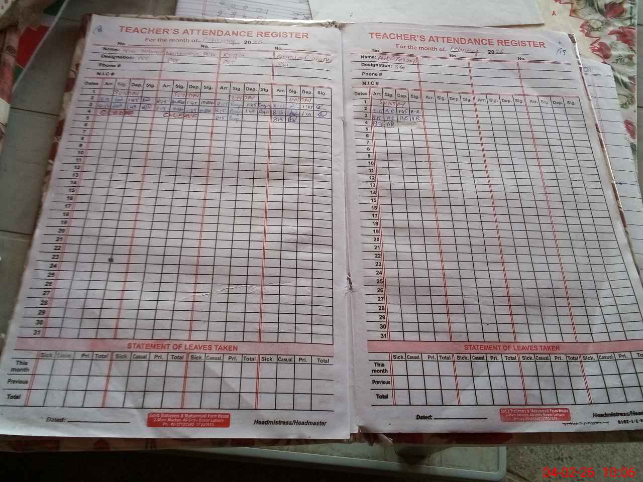 | Name: Hi**** Me**** Designation: (School Headmaster's/Headmistress's) PST Phone/Cell Number: 03**** |
