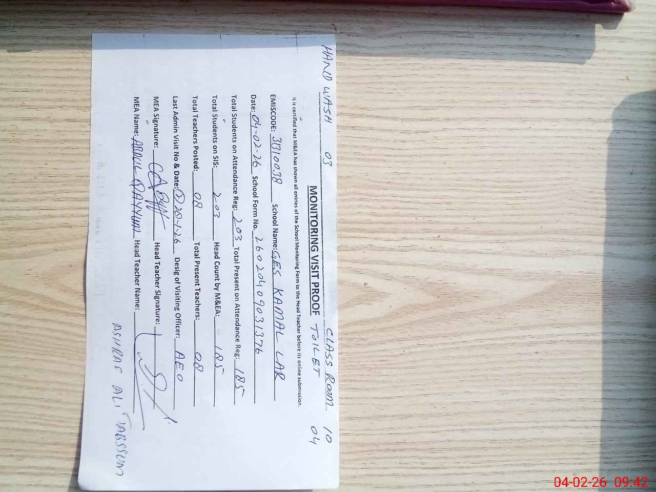 | EMIS Code: 31310038 | Name of School: GES KAMIL LAR | |||
