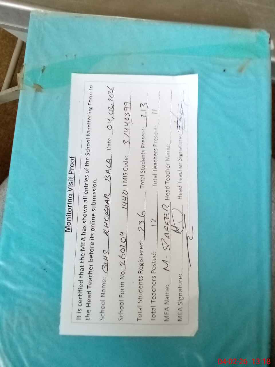| EMIS Code: 37440399 | Name of School: GHS KHOKHAR BALA | |||