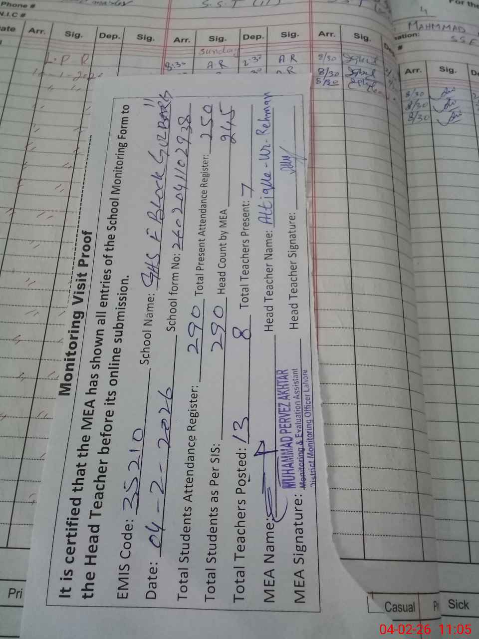 | EMIS Code: 35210954 | Name of School: GHS F-BLOCK GULBERG-II LAHORE | |||