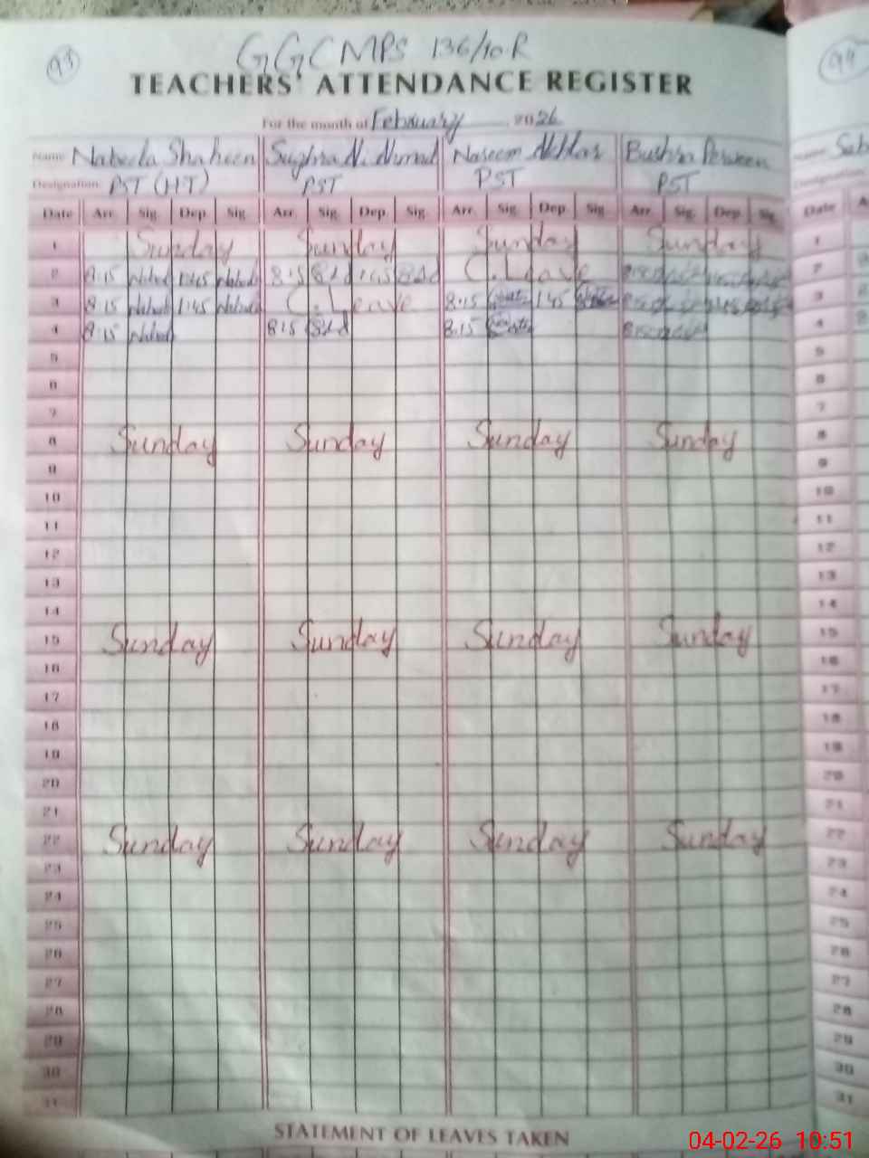 | Leave | Duty | Absent | Maternity | Medical | Ex- Pak |
