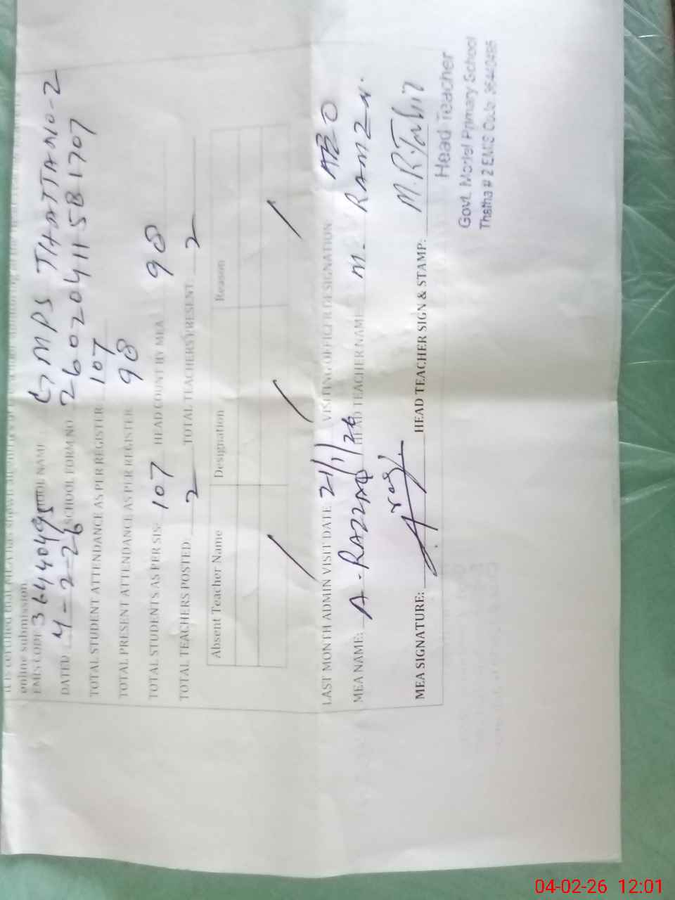 | EMIS Code: 36440495 | Name of School: GMPS THATHA NO.2 JAHANIAN | |||