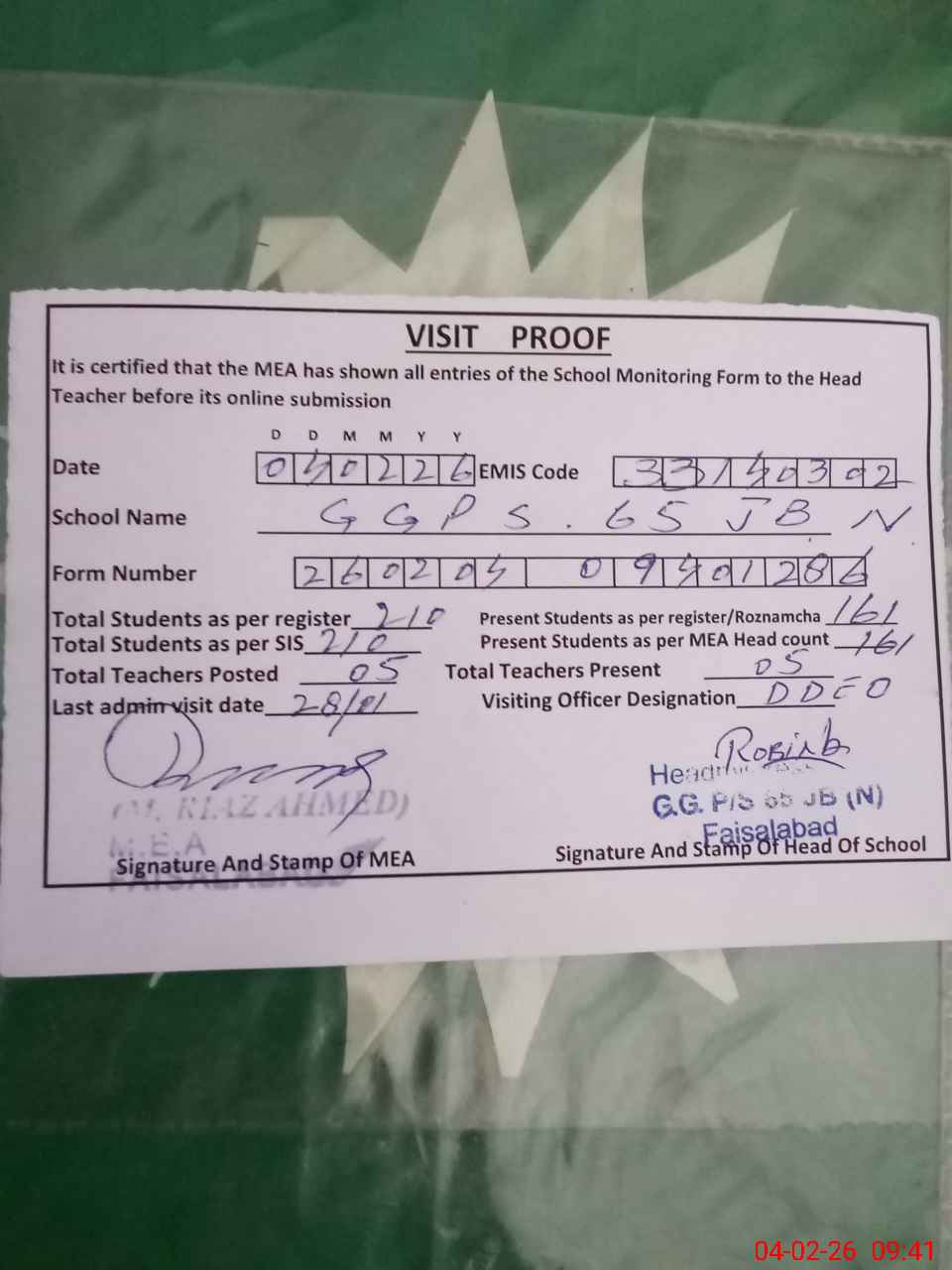 | EMIS Code: 33140302 | Name of School: GGPS CHAK 65 JB N | |||