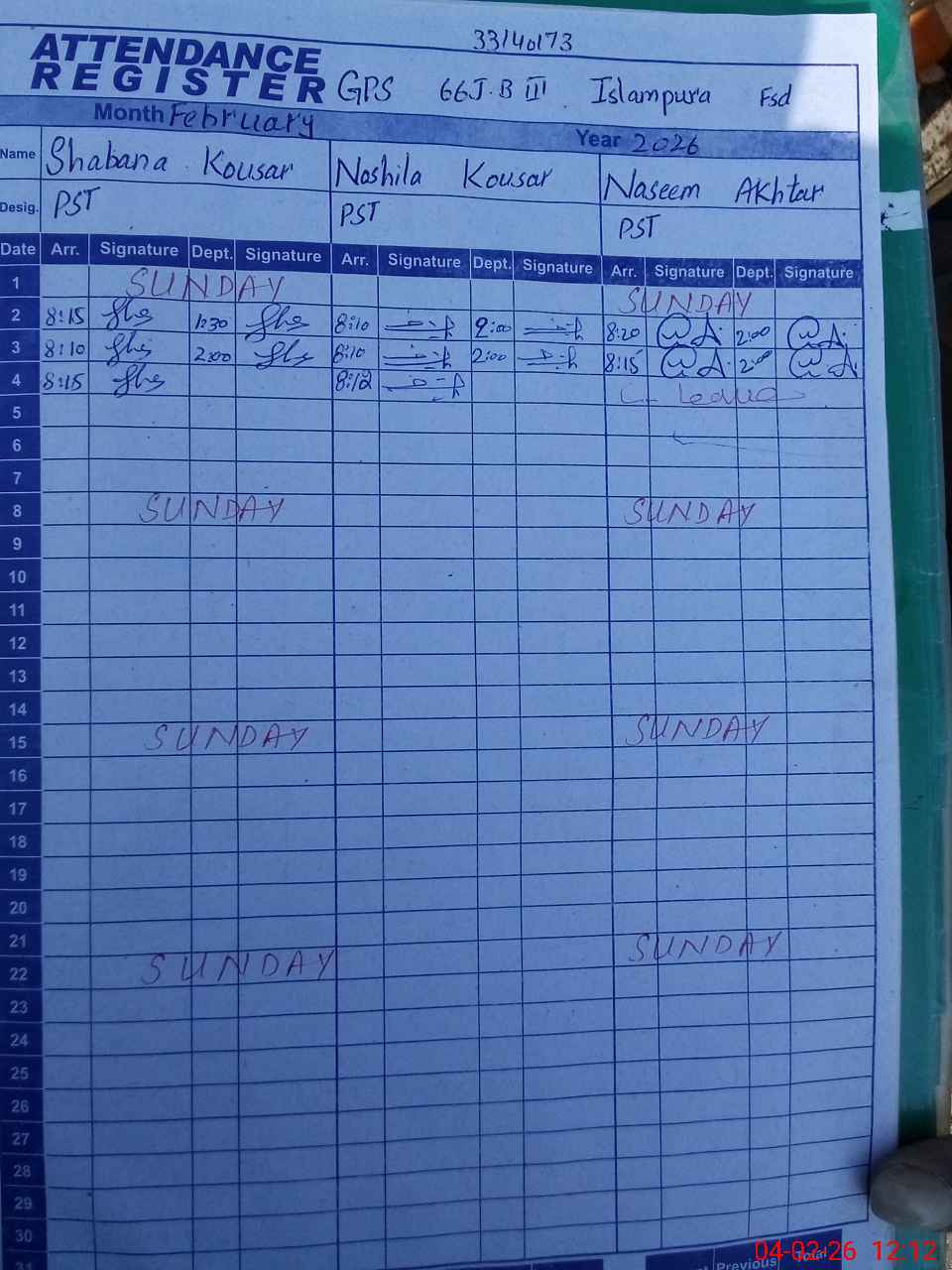 | 33**** | Na**** Ak**** | PST Science/Maths | Regular | 0 | 0 | 0 | 0 | 0 | 0 | 0 | 0 | 0 | Casual |