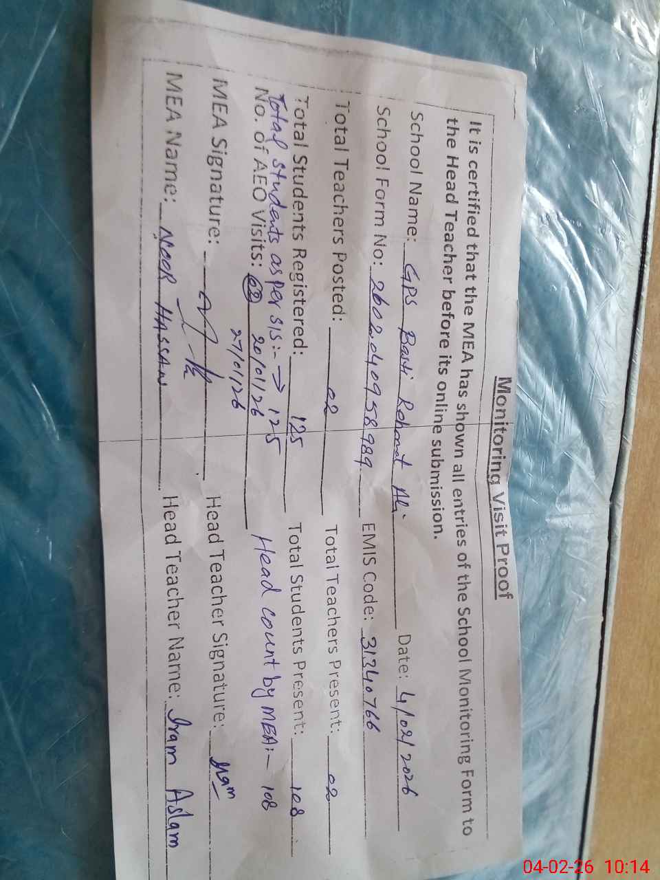 | EMIS Code: 31340766 | Name of School: GPS BASTI RAHMAT ALI | |||