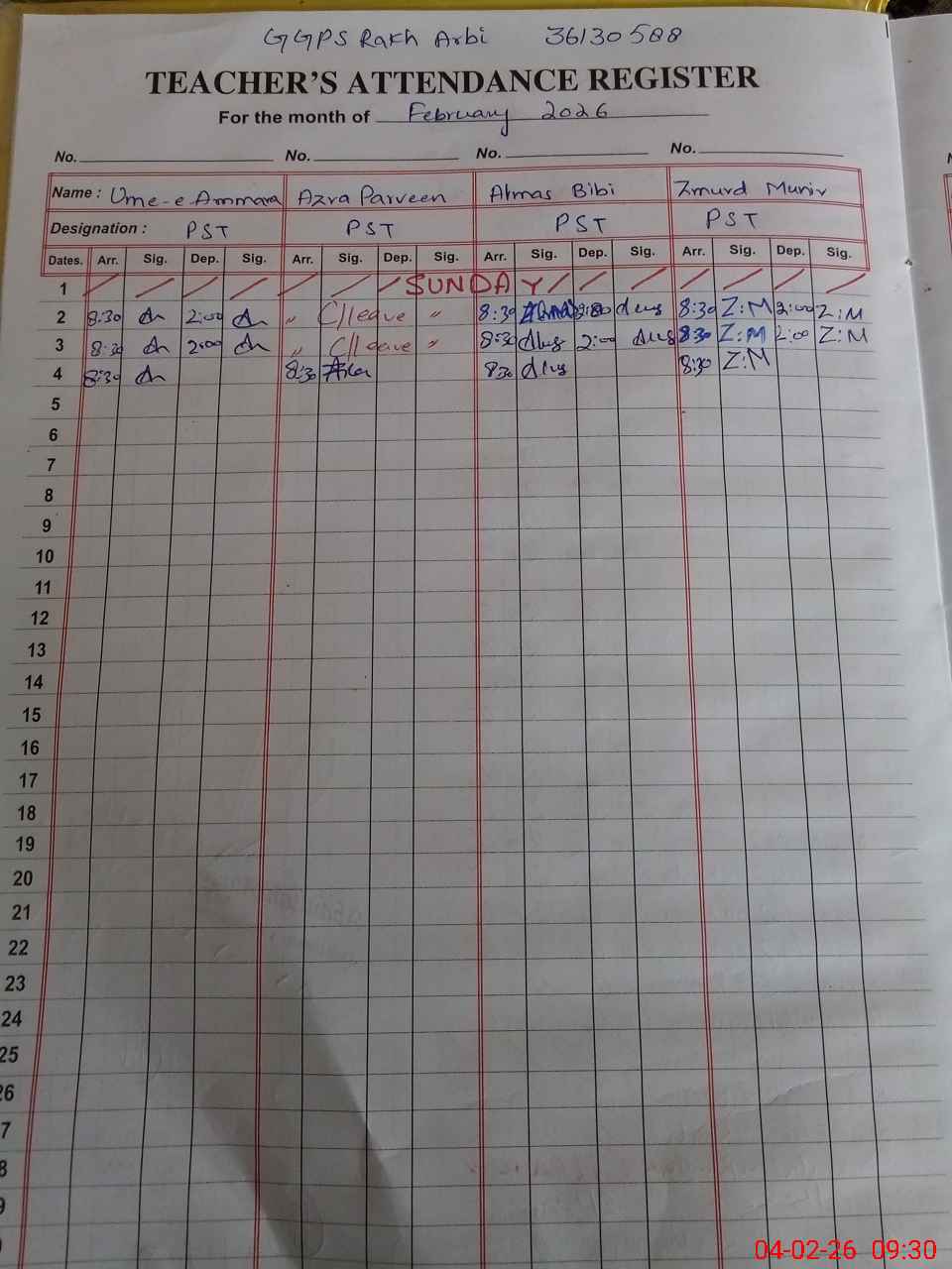 | Monitoring Date: 04-02-2026 | Start Time: 04-02-2026 09:08 AM | End Time: 04-02-2026 09:38 AM | Name of MEA: Zu**** Al**** | |