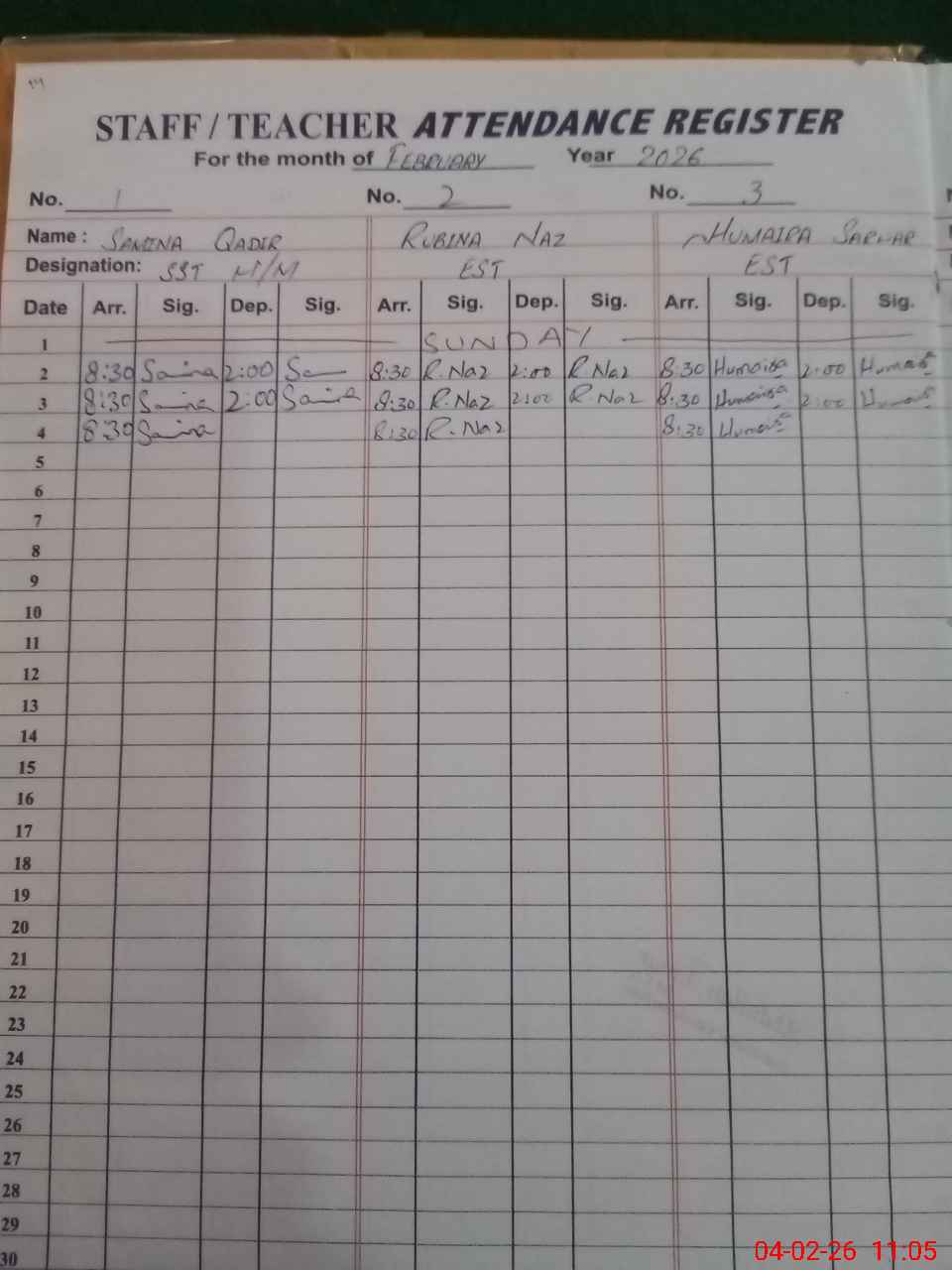 | Monitoring Date: 04-02-2026 | Start Time: 04-02-2026 10:21 AM | End Time: 04-02-2026 11:07 AM | Name of MEA: Zu**** Al**** | |