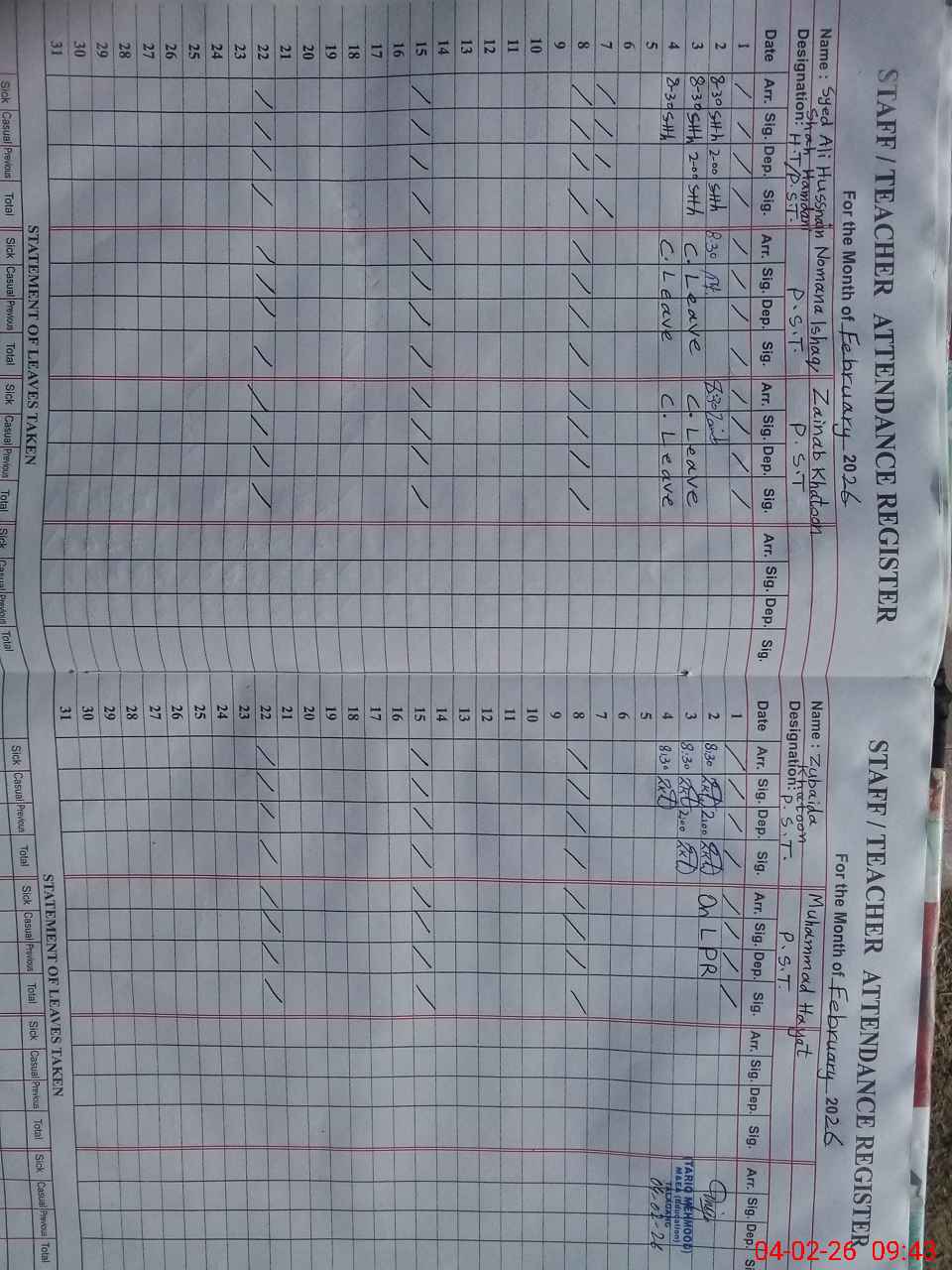 | 36**** | Za**** Kh**** | PST Science/Maths | Regular | 0 | 0 | 0 | 0 | 0 | 0 | 0 | 0 | 0 | Casual |