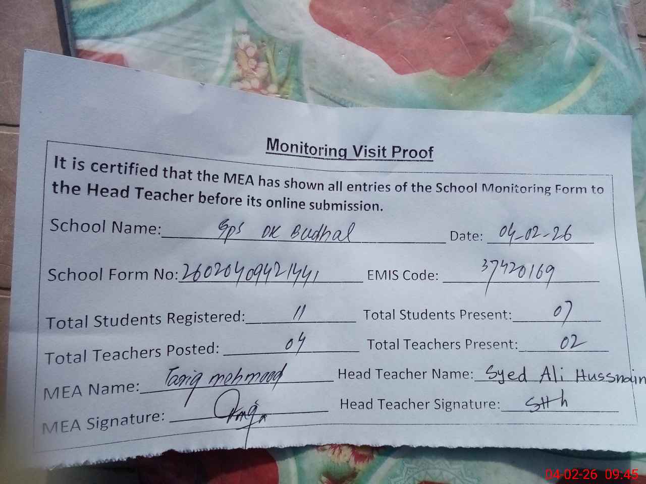 | EMIS Code: 37420169 | Name of School: GPS DHOK BUDHAL | |||