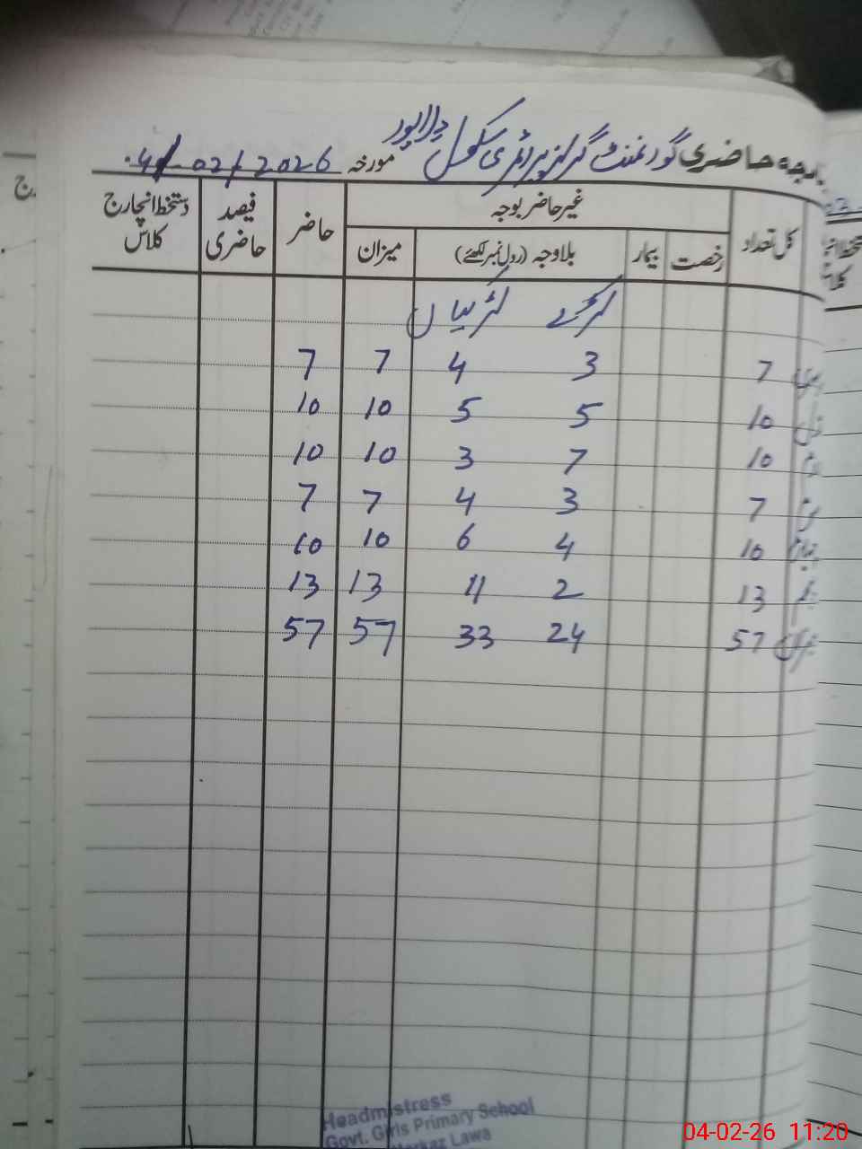 | District: TALAGANG | Tehsil: LAWA | Markaz: LAWA-FEMALE | Level: Primary | |