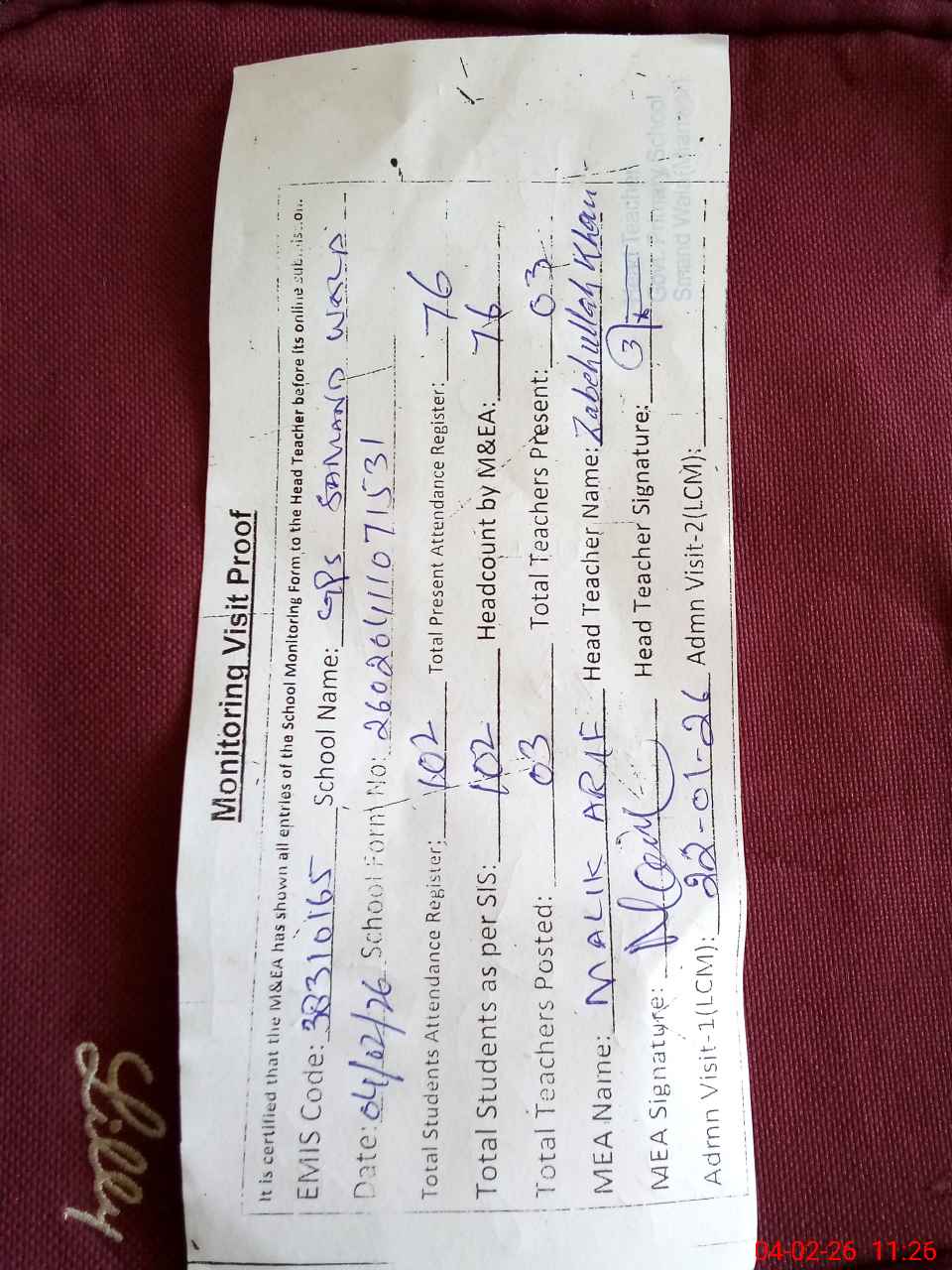| EMIS Code: 38310165 | Name of School: GPS SAMAND WALA PO KAMAR MUSHANI ISA KHEL | |||