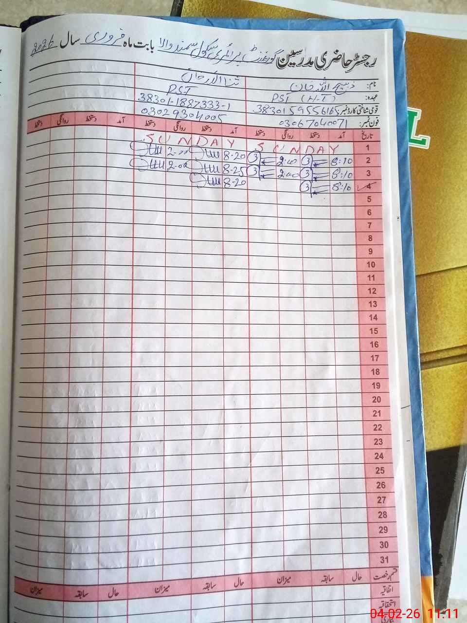 | Name: SA**** KH**** Designation: (School Headmaster's/Headmistress's) PST Phone/Cell Number: 03**** |