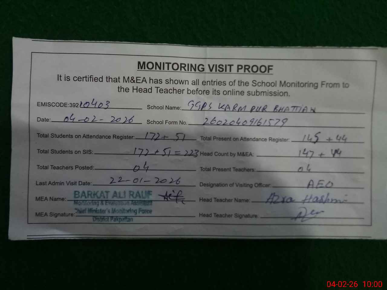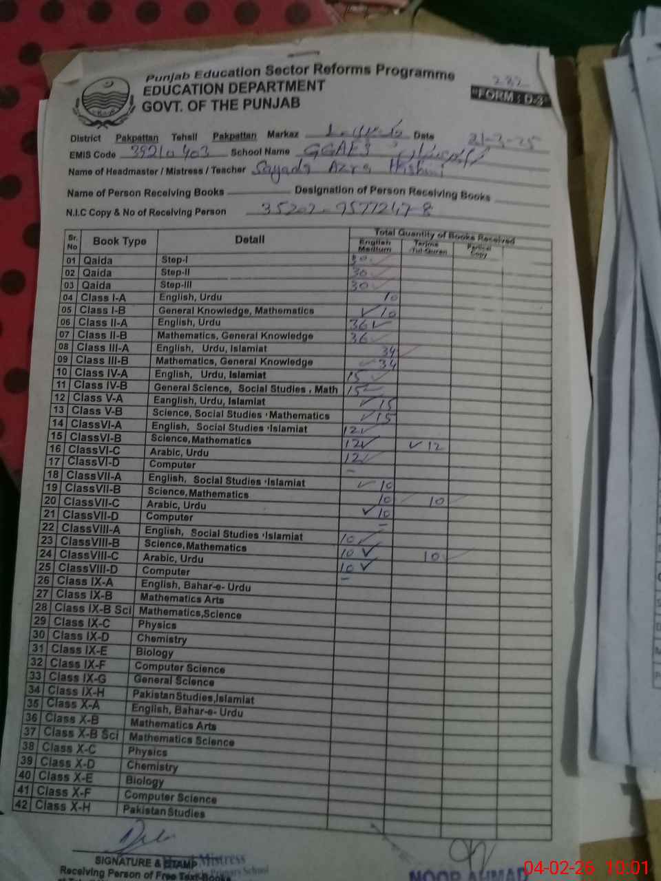| EMIS Code: 39210403 | Name of School: GGPS KARAM PUR BHATTAIN | |||