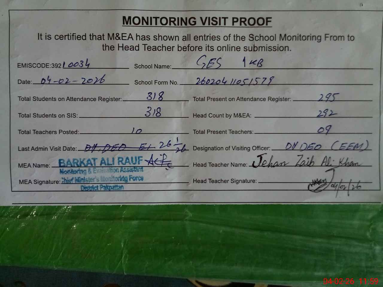 | EMIS Code: 39210034 | Name of School: GES 1 KB P/O PAKPATTAN | |||