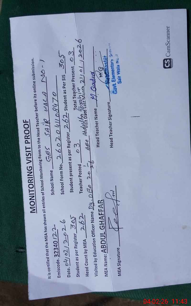 | EMIS Code: 32340122 | Name of School: GES SAIR WALA NO. 1 | |||