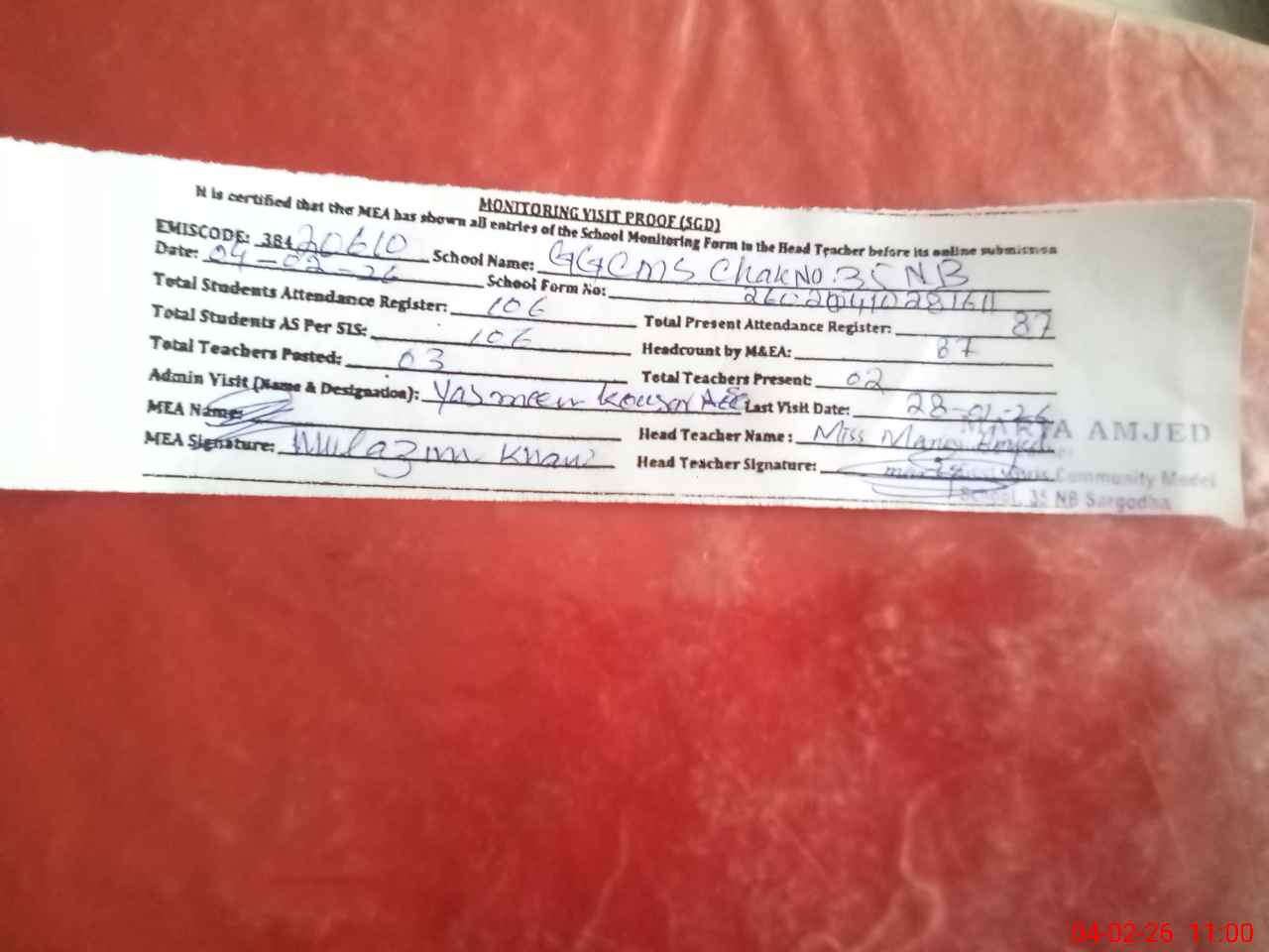 | Monitoring Date: 04-02-2026 | Start Time: 04-02-2026 10:28 AM | End Time: 04-02-2026 11:04 AM | Name of MEA: MU**** KH**** | |