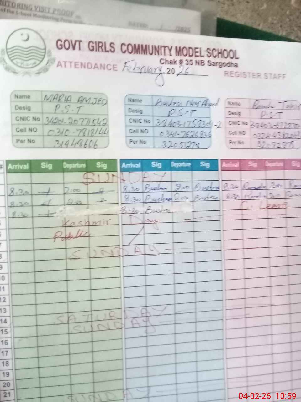 | Remarks (Use Separate Page if Required): Ramsha Tahir PST CNIC 3840367283122 show on Casual leave but leave not approved | |||||