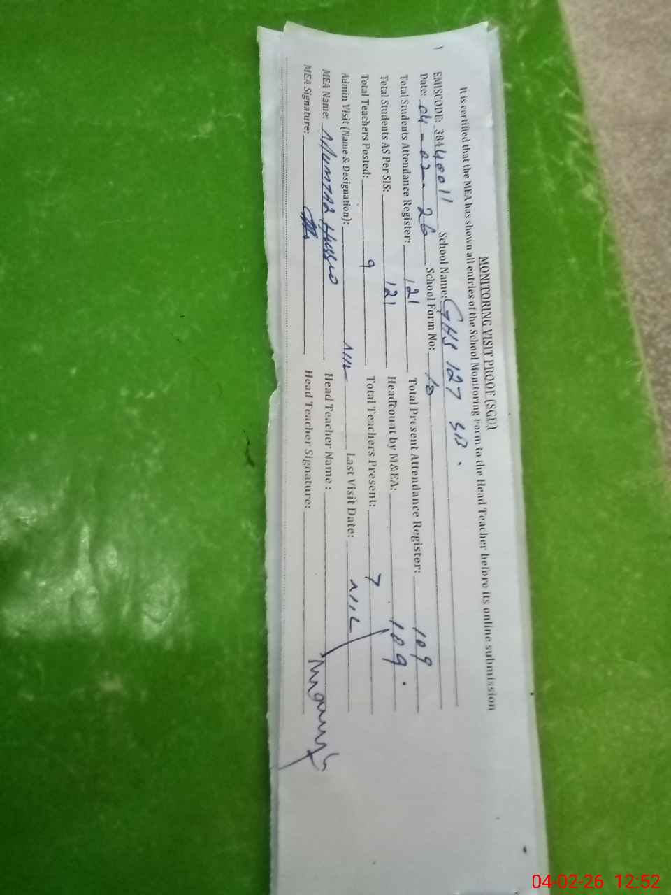 | EMIS Code: 38440011 | Name of School: GHS CHAK NO.127 SB | |||