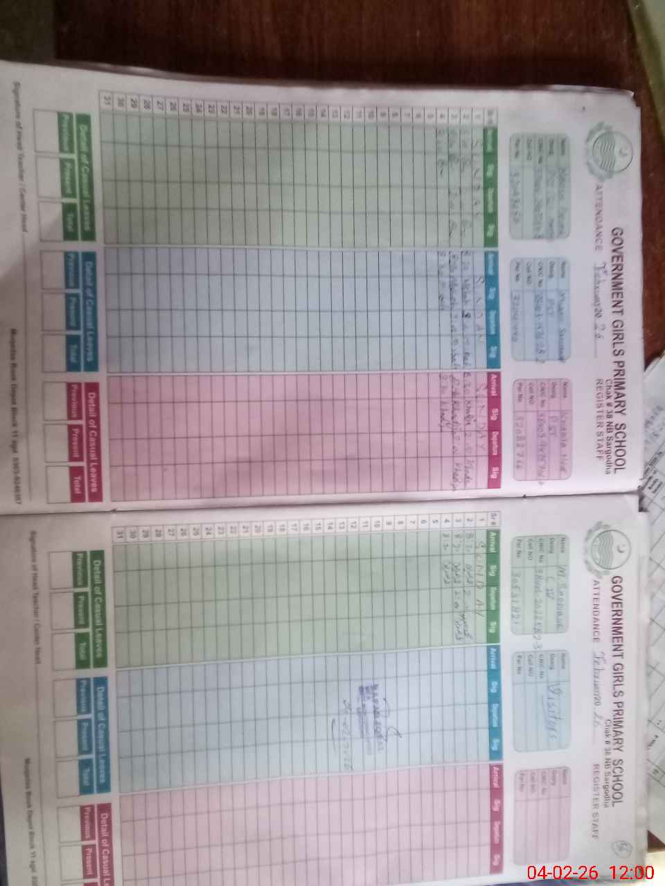 | CNIC | Full Name | Designation | R/C | Absence During Last Calender Month |