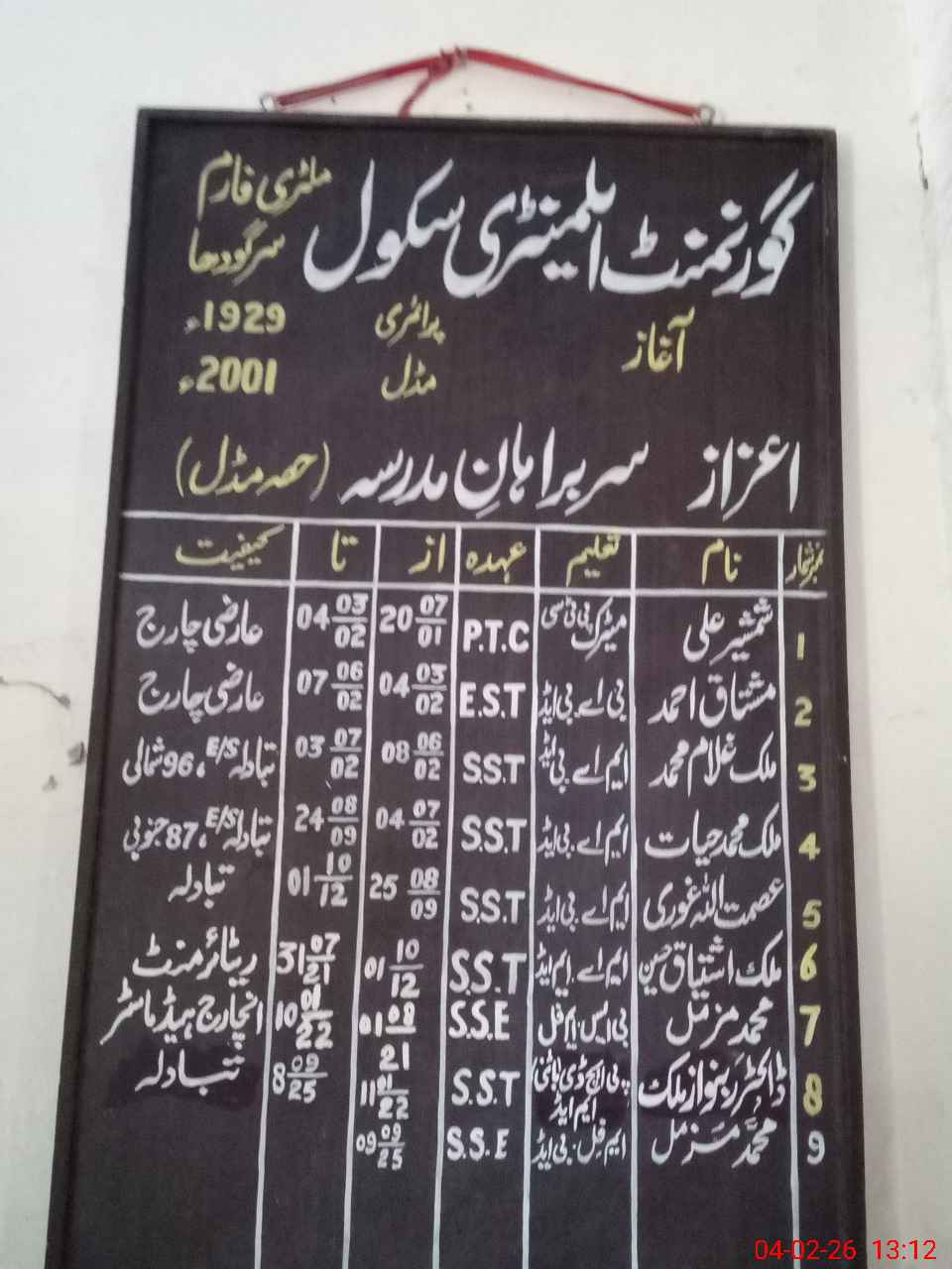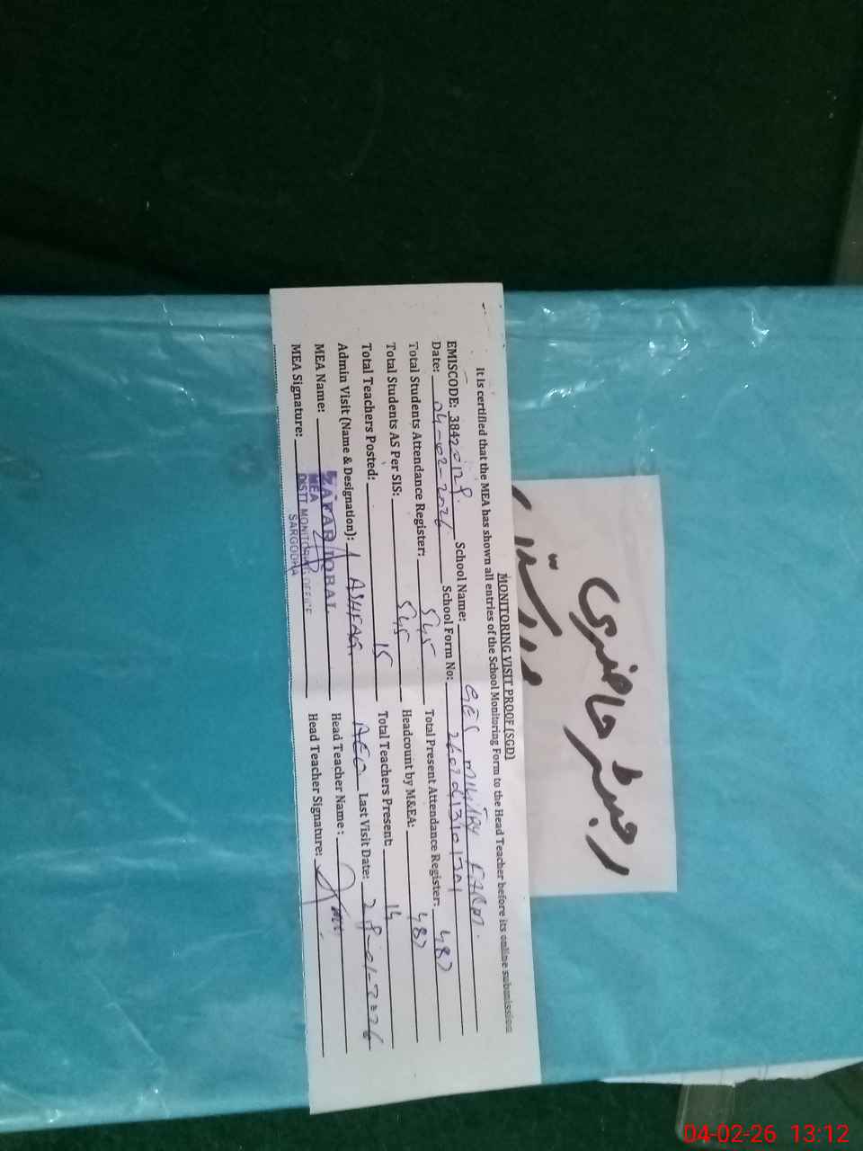 | EMIS Code: 38420129 | Name of School: GES MILITARY FARM SARGODHA | |||