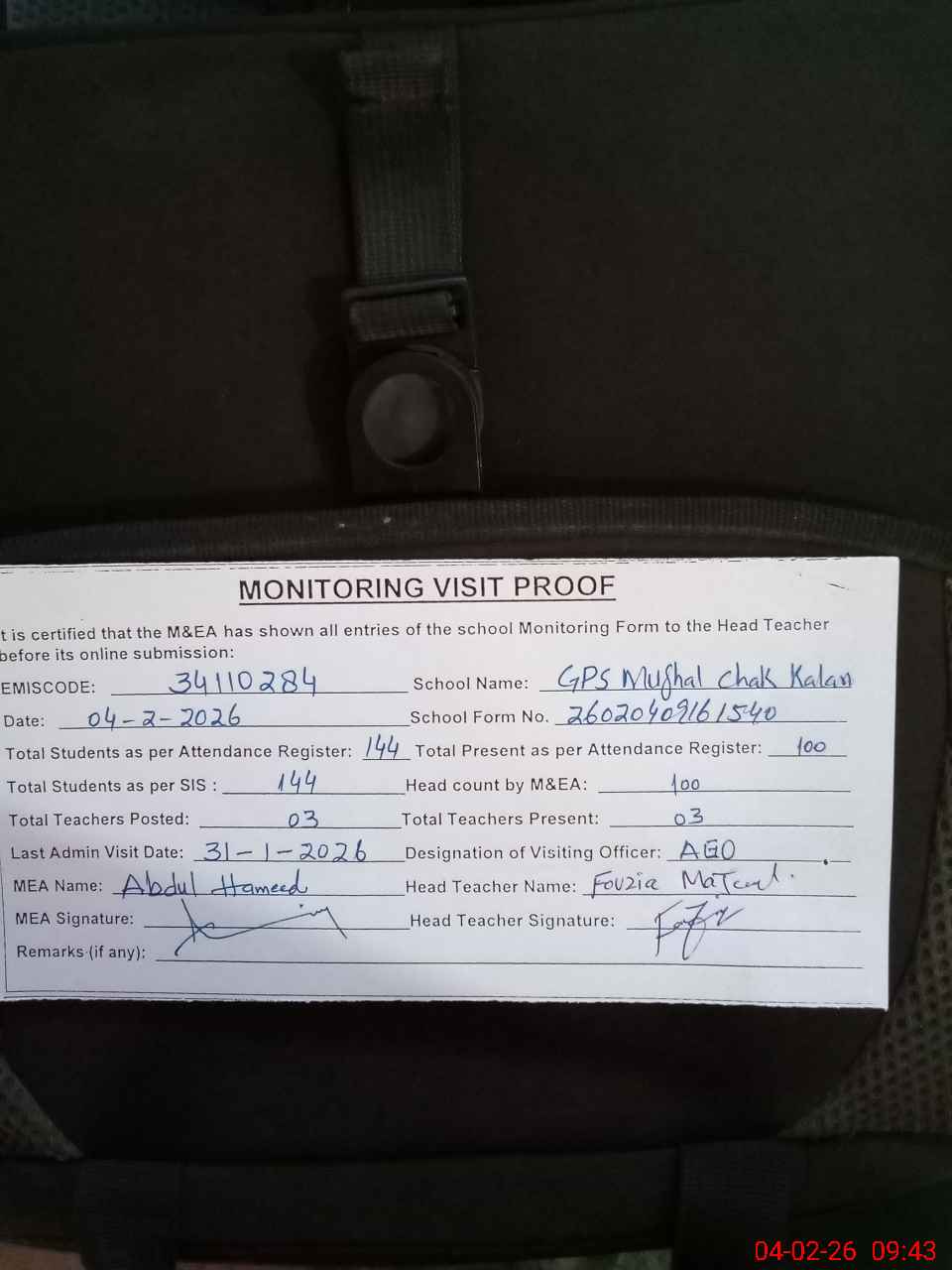 | EMIS Code: 34110284 | Name of School: GPS MUGHAL CHAK KALAN | |||