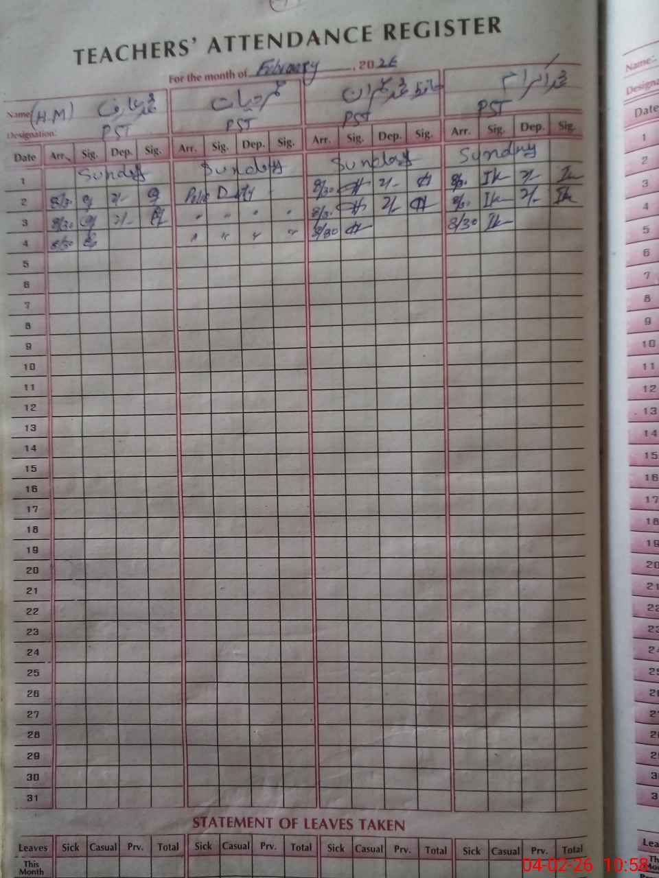 | Leave | Duty | Absent | Maternity | Medical | Ex- Pak |