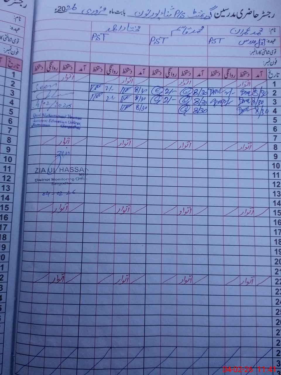 | Name: MU**** IM**** Designation: (School Headmaster's/Headmistress's) PST Phone/Cell Number: 03**** |