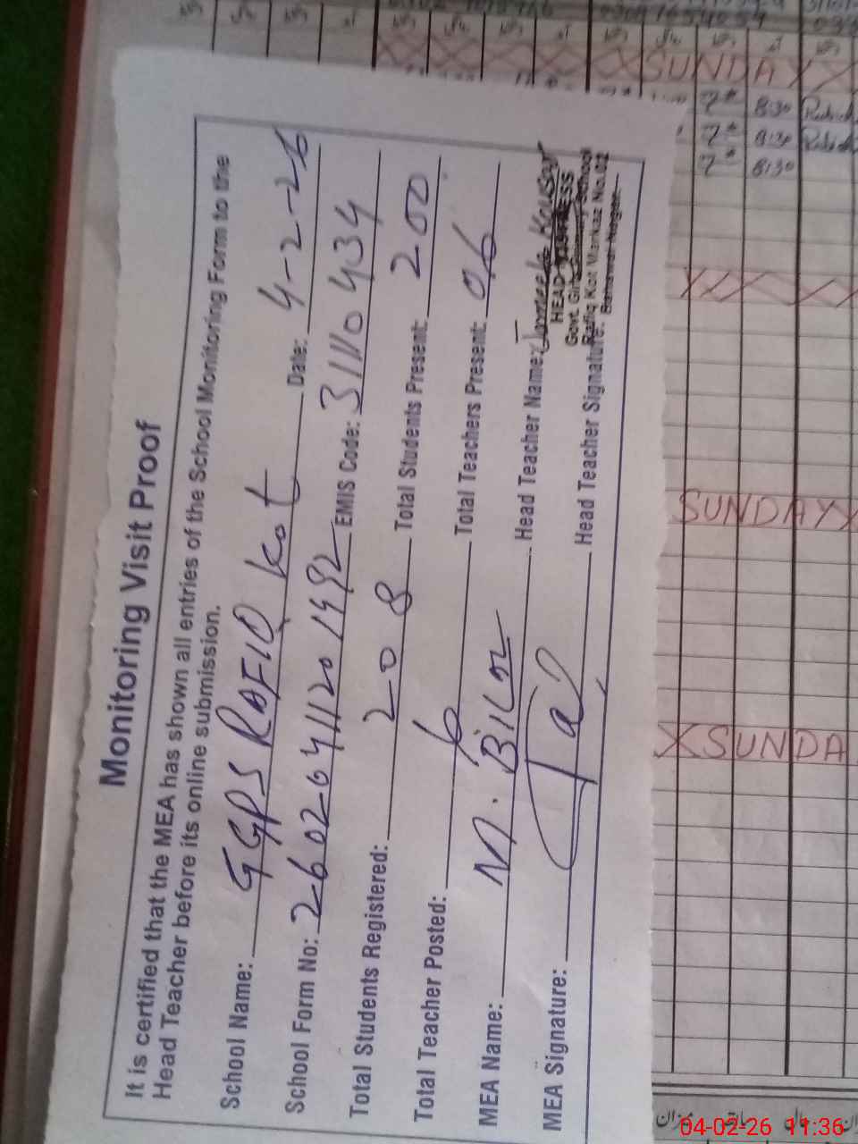 | EMIS Code: 31110434 | Name of School: GGPS RAFIQ KOT | |||