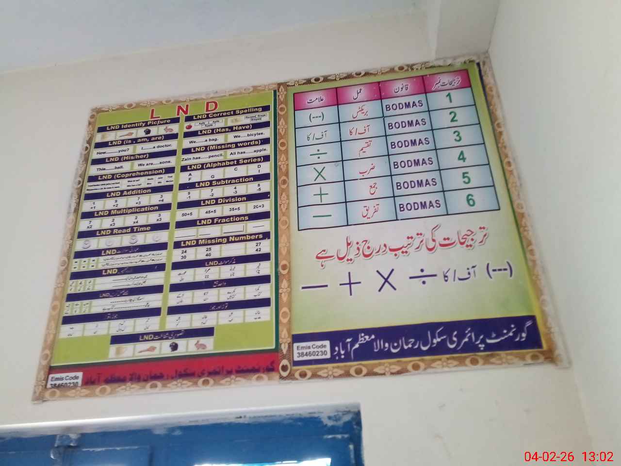 | EMIS Code: 38460230 | Name of School: GPS DERA REHMAN WALA | |||