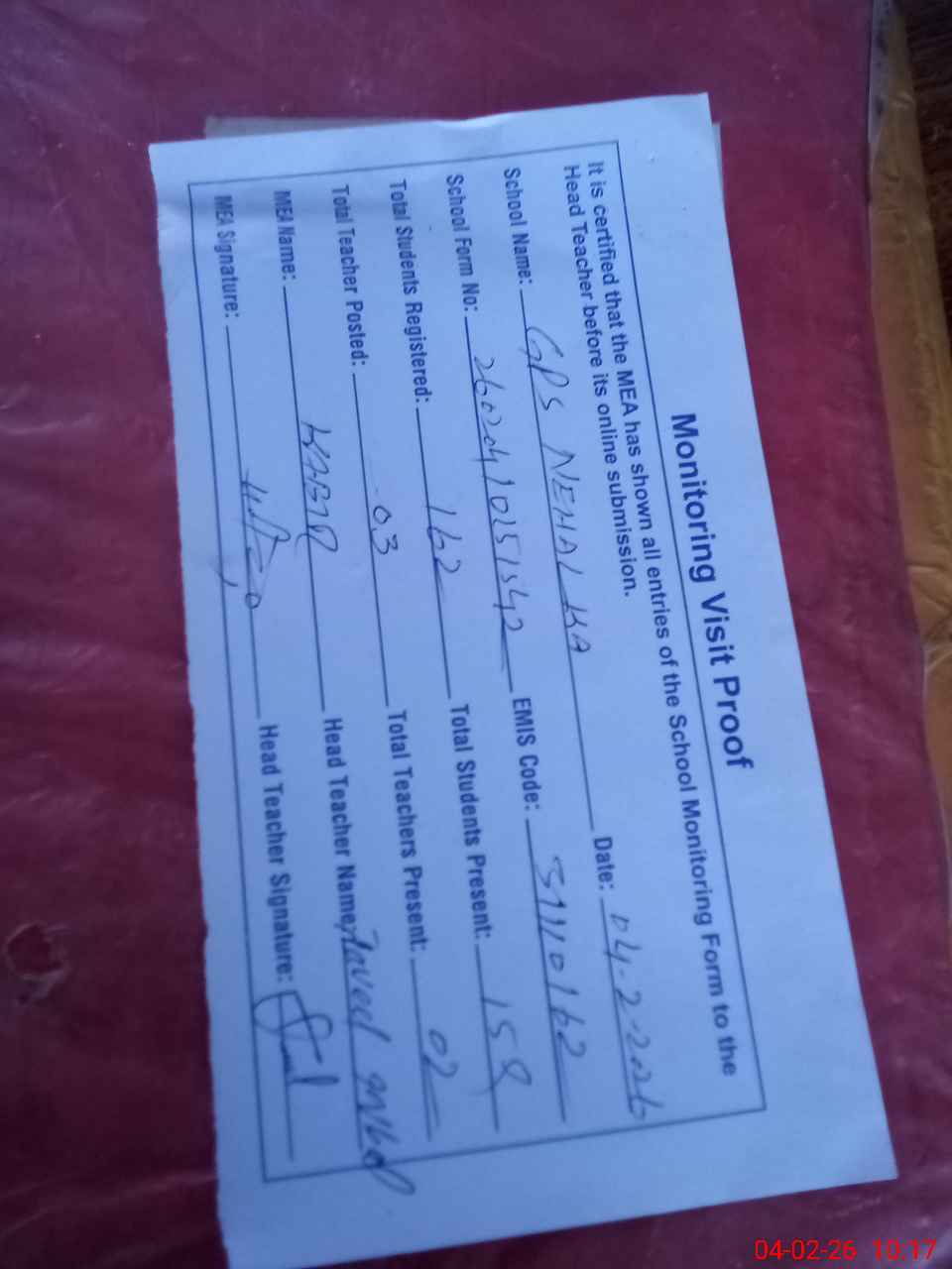 | EMIS Code: 31110162 | Name of School: GPS NIHALKA | |||