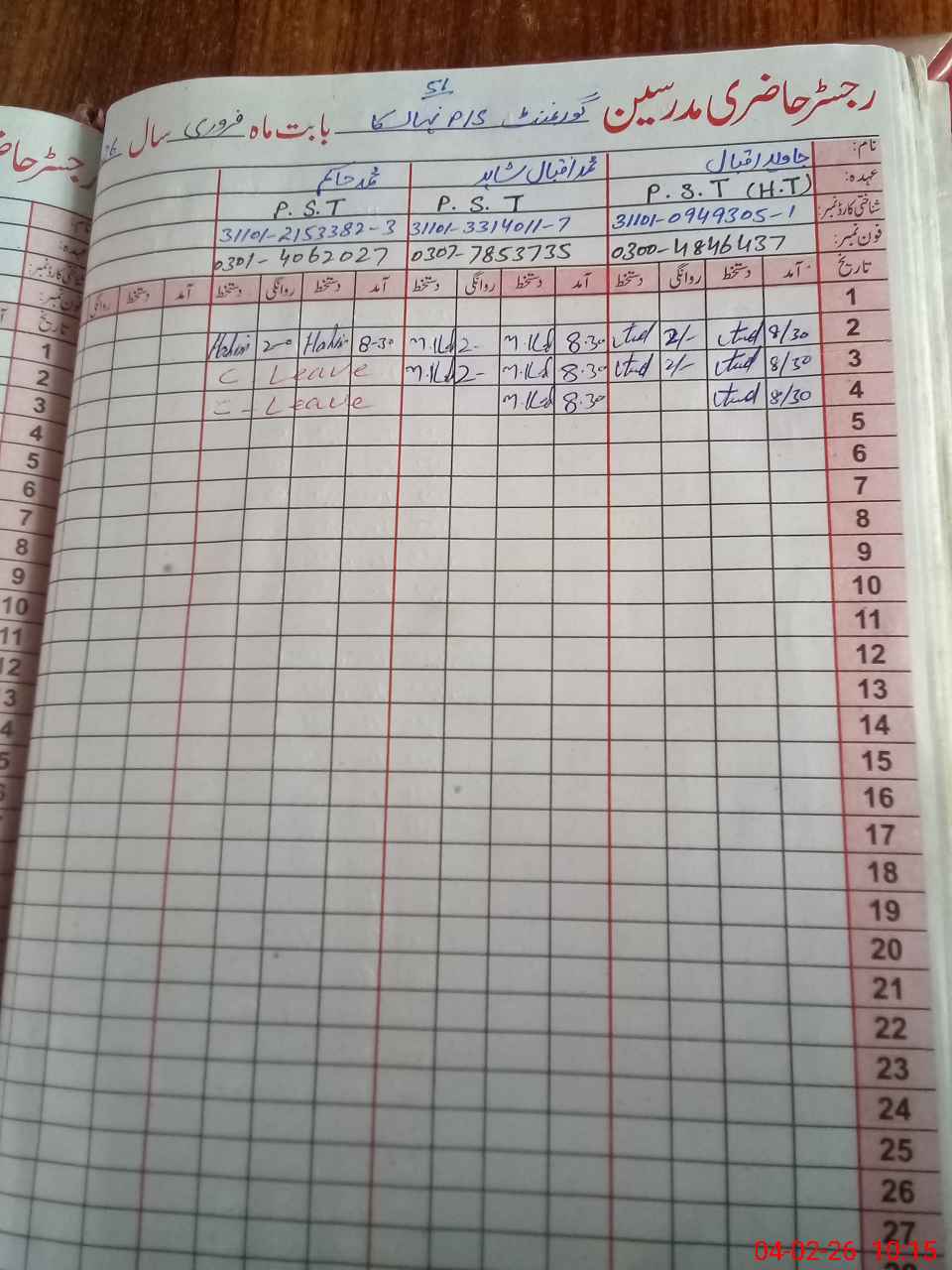 | Name: Ja**** Iq**** Designation: (School Headmaster's/Headmistress's) PST Phone/Cell Number: 03**** |