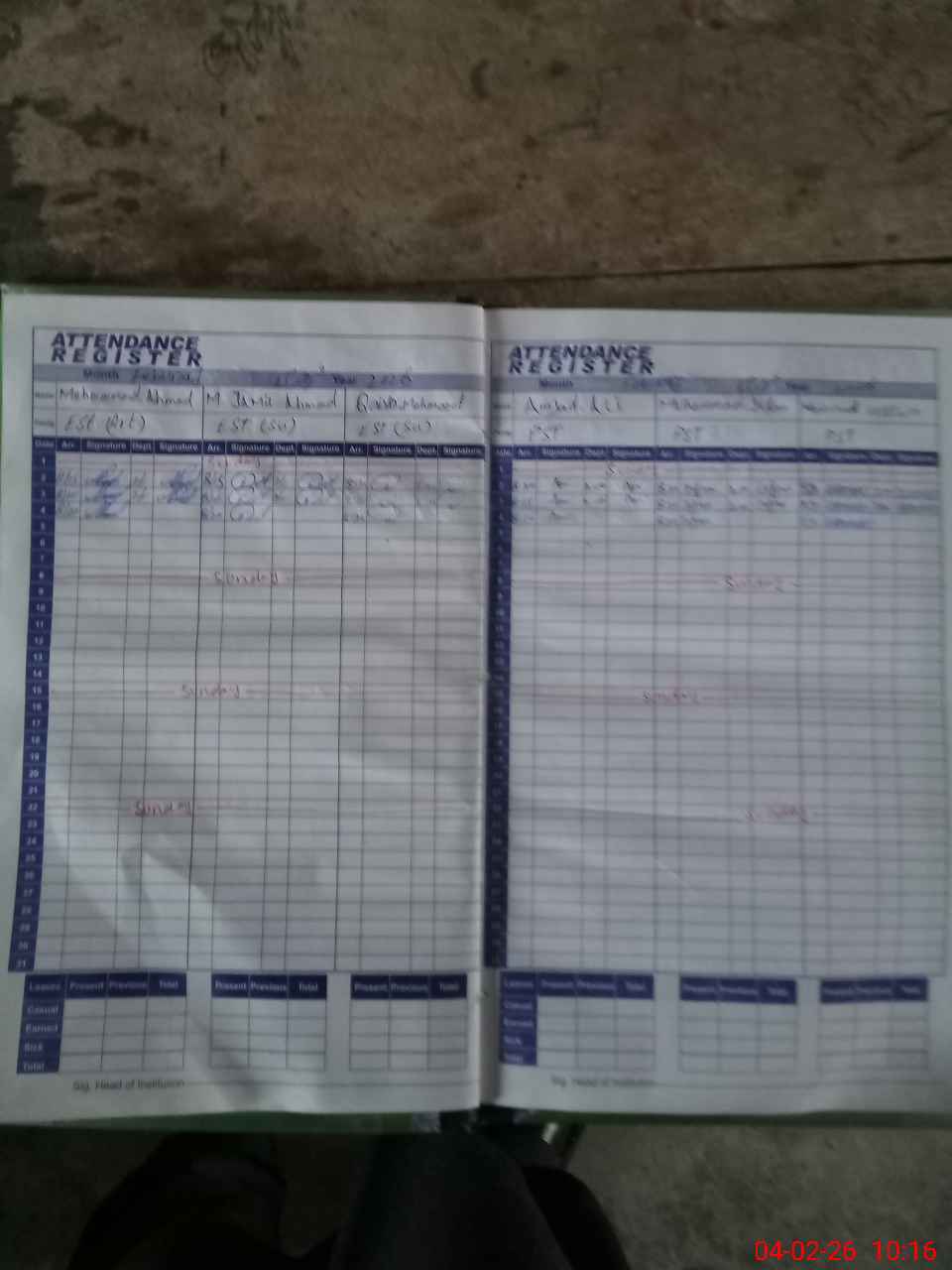 | CNIC | Full Name | Designation | R/C | Absence During Last Calender Month |