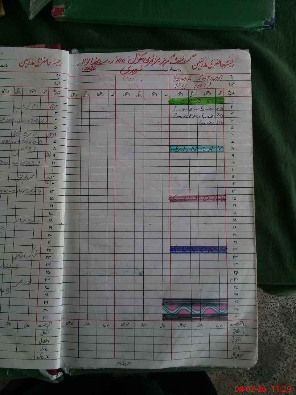 | CNIC | Full Name | Designation | R/C | Absence During Last Calender Month |