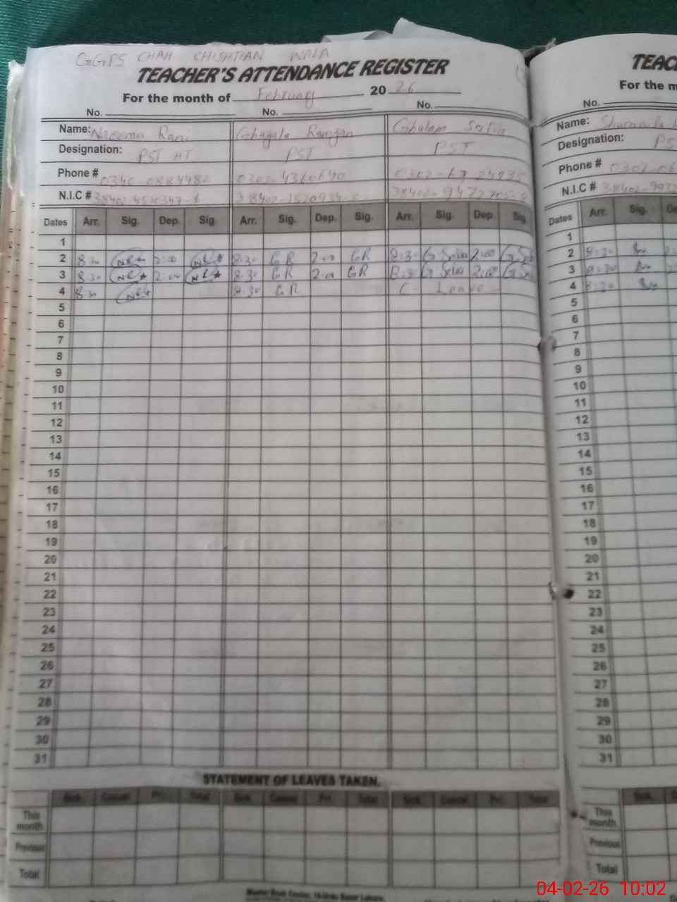 | Name: NA**** RA**** Designation: (School Headmaster's/Headmistress's) PST Phone/Cell Number: 03**** |
